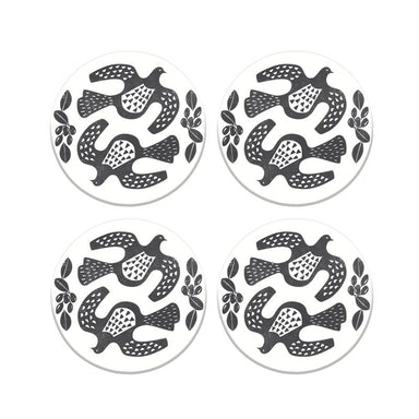 100% New Zealand Linocut Tui Ceramic Coaster SetThese eye-catching monochrome linocut style coasters are a striking addition to your coffee table o...