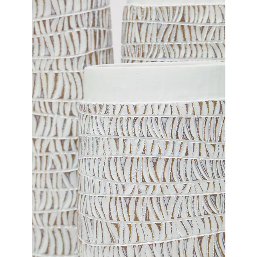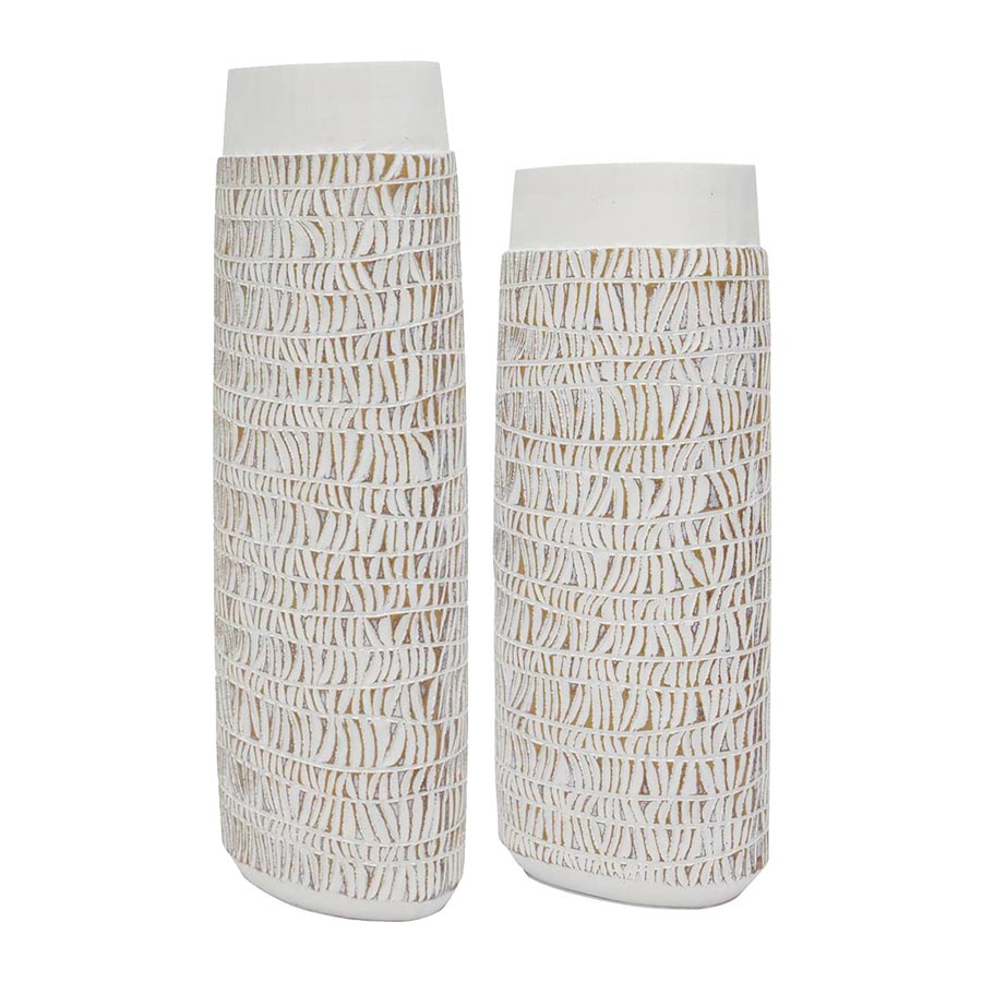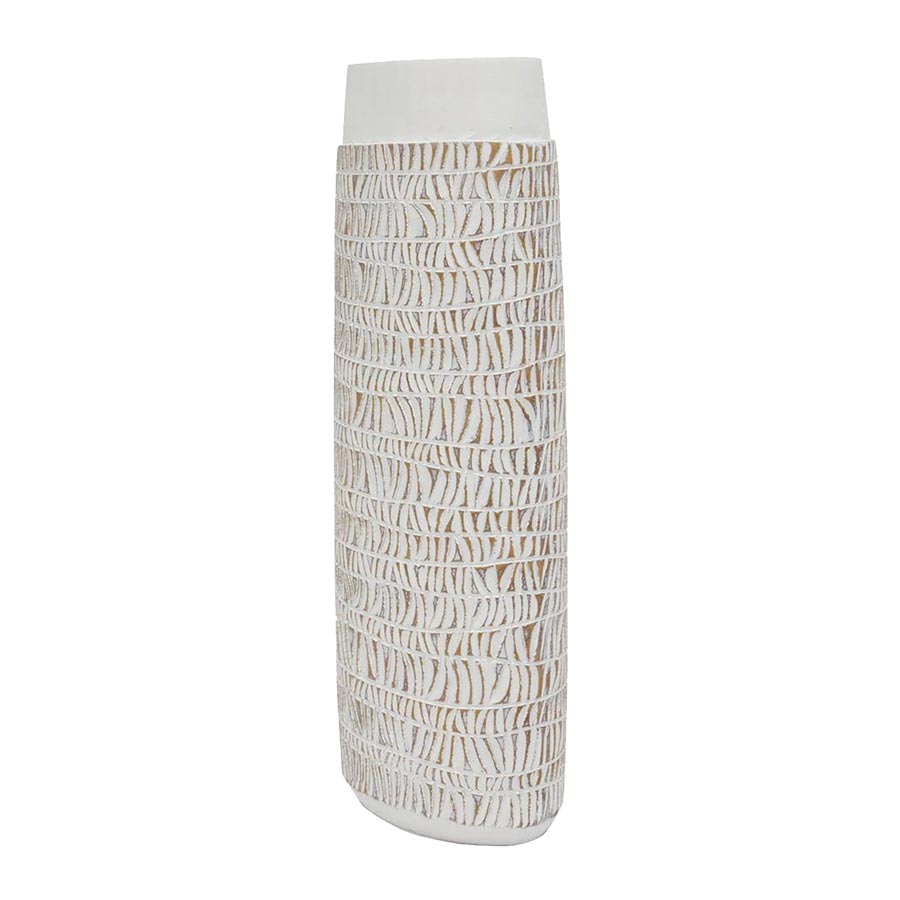 Made of polyresin with a textured carved design and white wash distressed finish is sure to make a bold statement in any space.