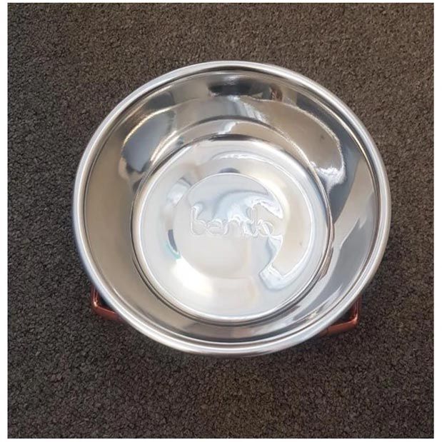 Perfect for cats or small dogs. Includes stainless steel with Bendo imprinted bowl & stand.
