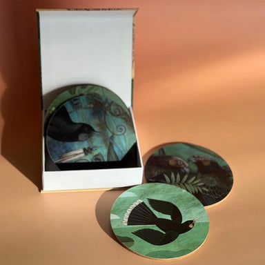 Wolfkamp & Stone Toetoe CoasterBeautiful black cork backed coaster with striking New Zealand Toetoe design by NZ Artist Tanya Wolfkamp. Made wi...