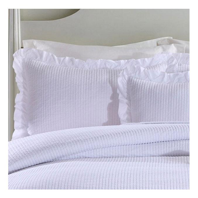 The Audrey Cushion cover features a subtle yet elegant white striped design with ruffle fringe which creates a versatile look that coordinates with just about any bedroom style – from classic to modern or countryside.