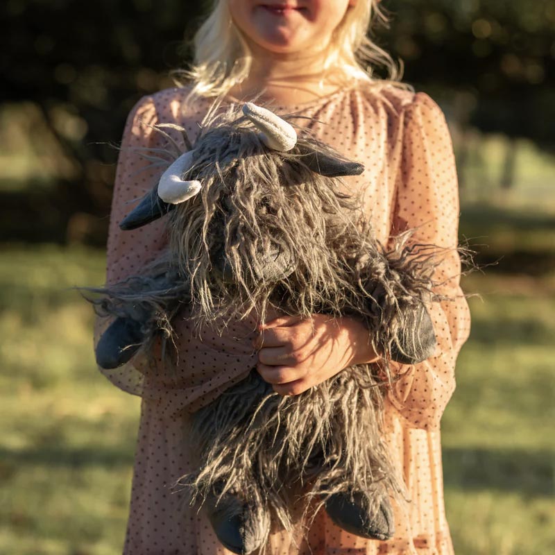 This adorable and shaggy grey cow soft toy is perfect for snuggling up to!