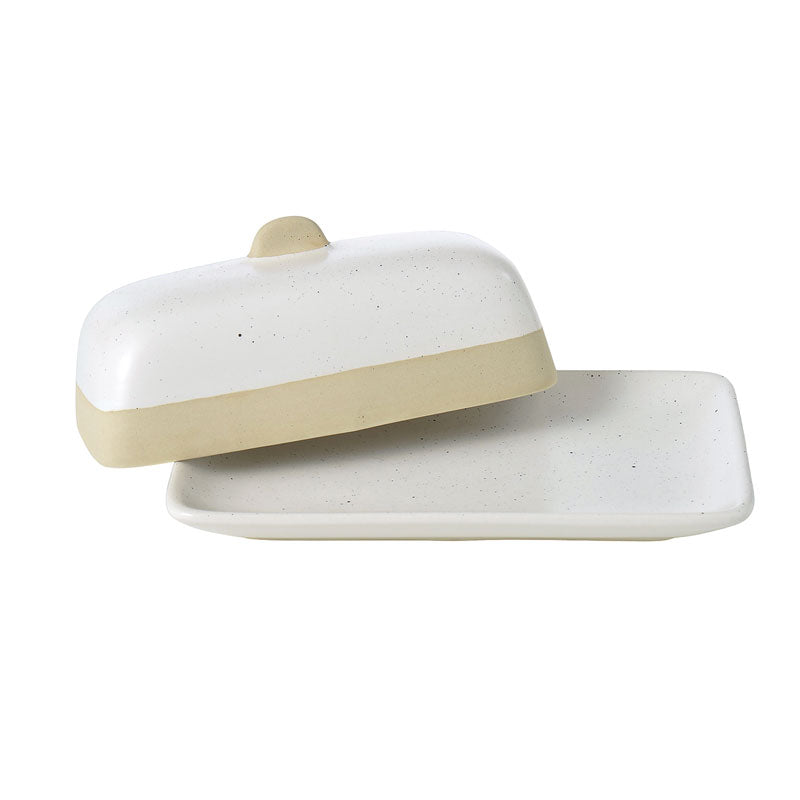 Made from stoneware, this off-white butter dish is ideal for storing and serving a block of delicious butter.