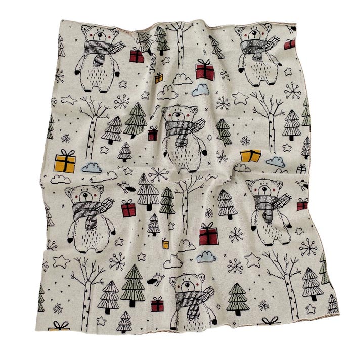 This luxurious soft blanket is made from 100% breathable cotton to keep baby comfortable and features a cute winter bear design.