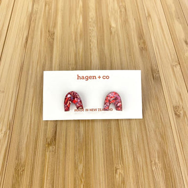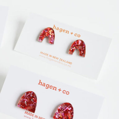 Hagen & Co. Open Arch Stud Earrings - BlueΒ Glitter These beautiful earrings from Hagen + Co are designed and hand crafted in Auckland, New Zeal...