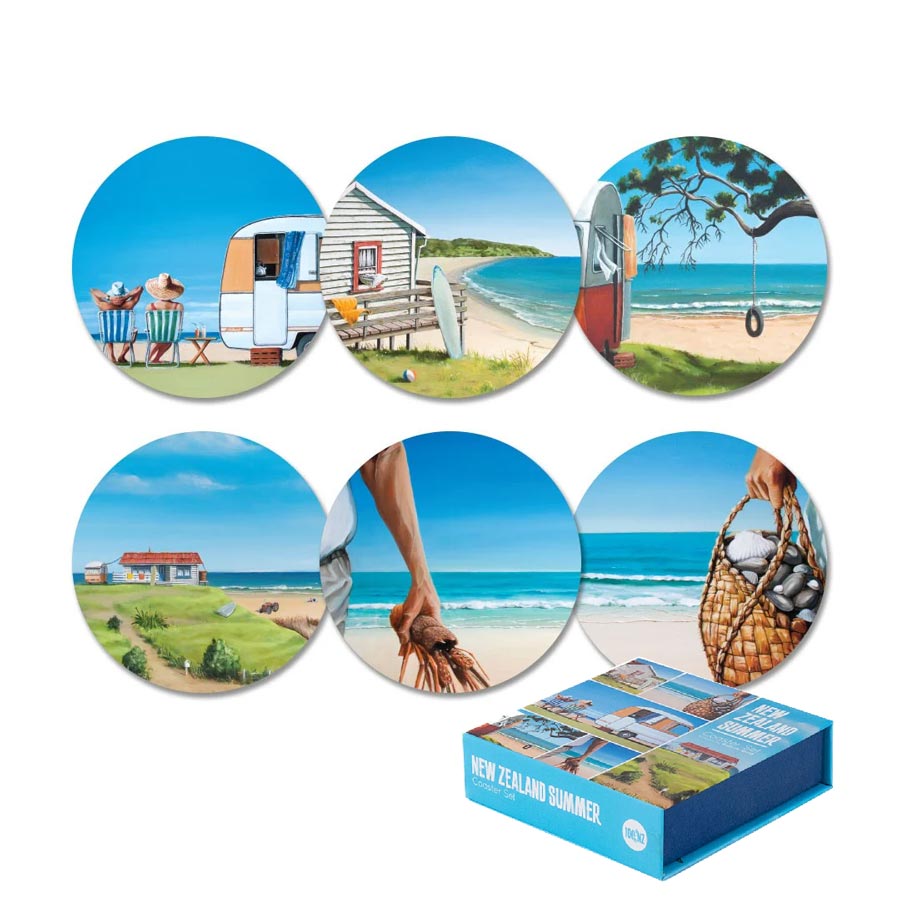 With a relaxing New Zealand summer feel, these boxed coasters are perfect for beach-lovers and baches.ย