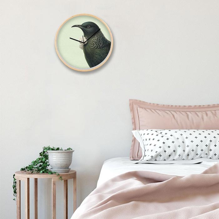 This beautifully illustrated clock features New Zealand's most loved native bird the Tui.