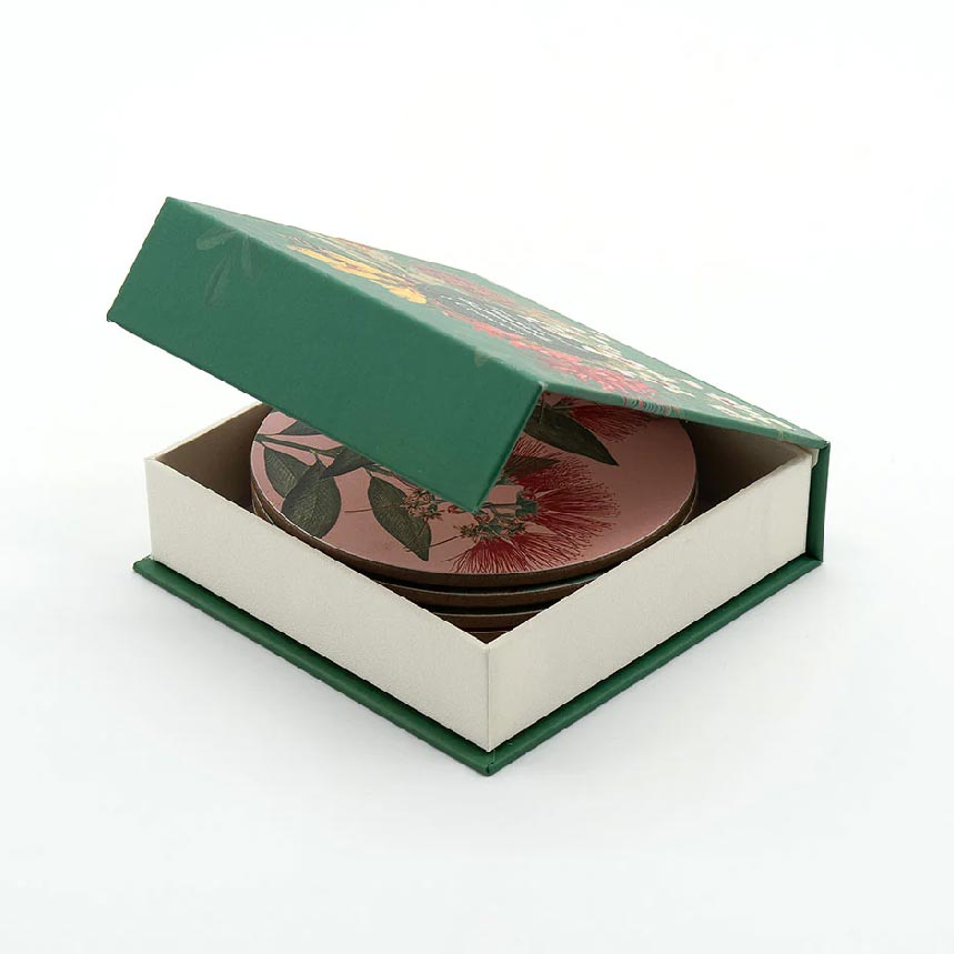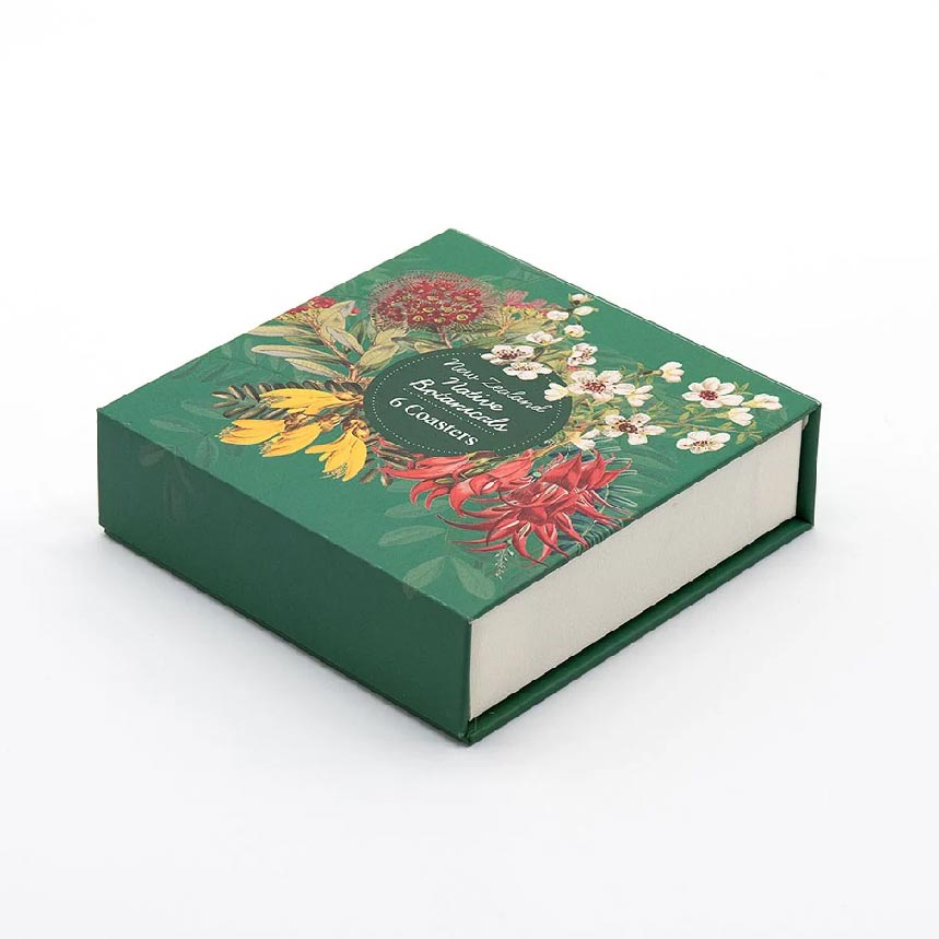 This stunning box set of coasters features unique native botanicals of New Zealand.