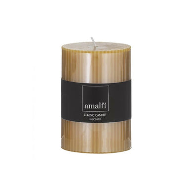 Amalfi Ribbed Unscented Pillar Candle - MustardMade from unscented paraffin wax in a mustard colour, this fashionable ribbed pillar candle offers a...