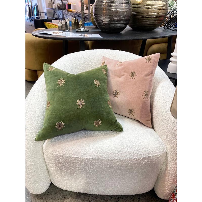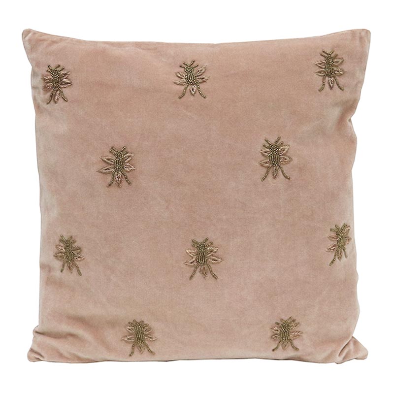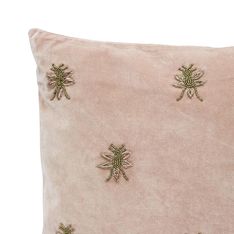 Embroidered Bee Blush Velvet Cushion (45cm)