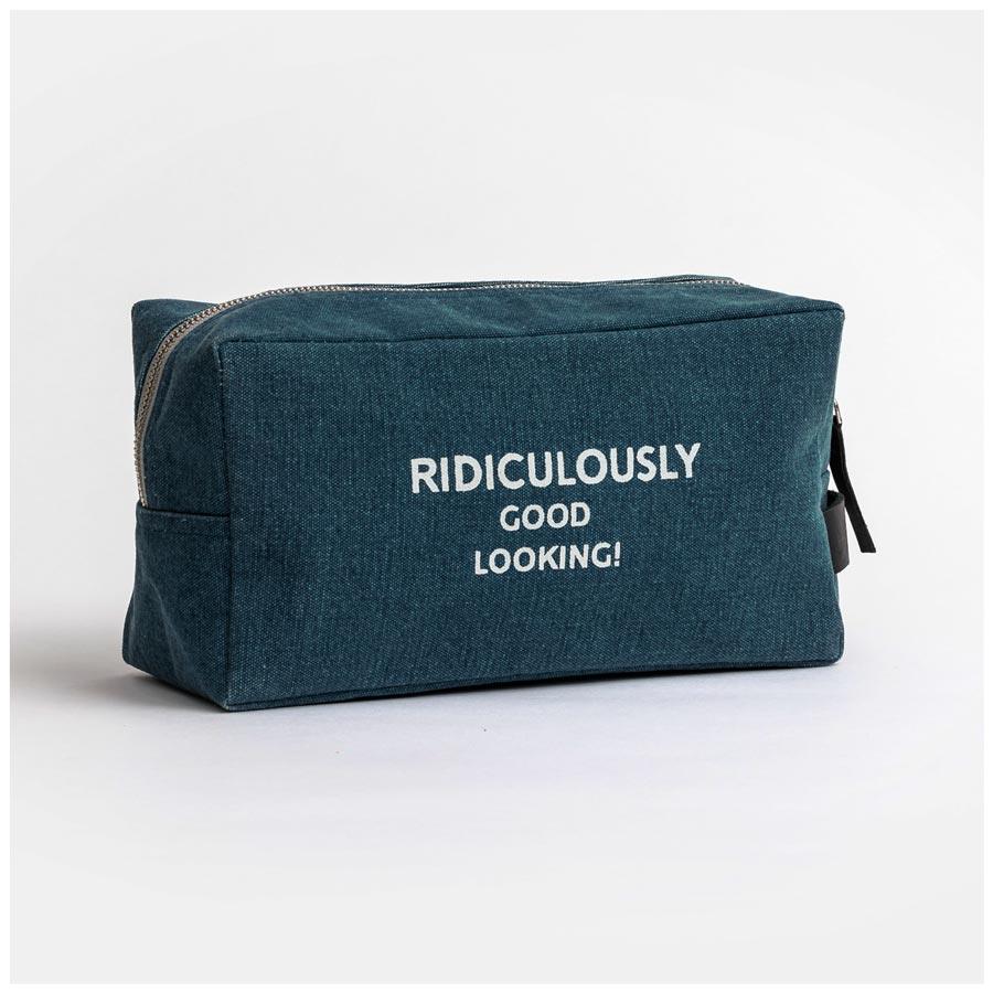 Travel in style using this men’s toilet bag featuring the saying "Ridiculously Good Looking". Nicely sized, it will fit all the manly travel essentials.