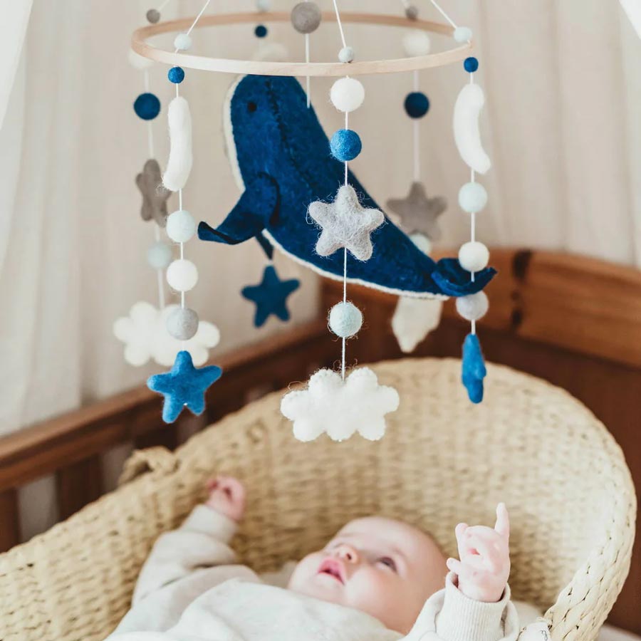 Tik Tak Handmade NZ Wool Baby Mobile - Blue Whale