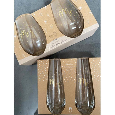 Urban Products Stemless ChampagneΒ Glass Set - Mr & Mrs These gorgeous stemless champagne glasses will have you celebrating in style. They featu...