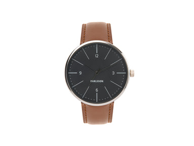 Karlsson Men's Normann Watch - BlackMen's watch with a chocolate tan leather strap, black dial and silver casing. Approx Size: 40mm Diameter.Includ...
