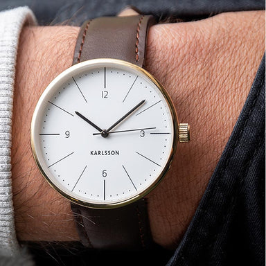 Karlsson Men's Normann Watch - WhiteMen's watch with a chocolate brown leather strap, white dial and gold casing. Approx Size: 40mm Diameter.Includ...
