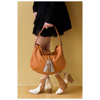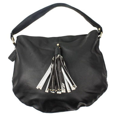The Design Edge Dublin Bag - Jersey Hairon & Black Leather The Dublin handbag makes a striking companion, with its large tassel detailing slou...