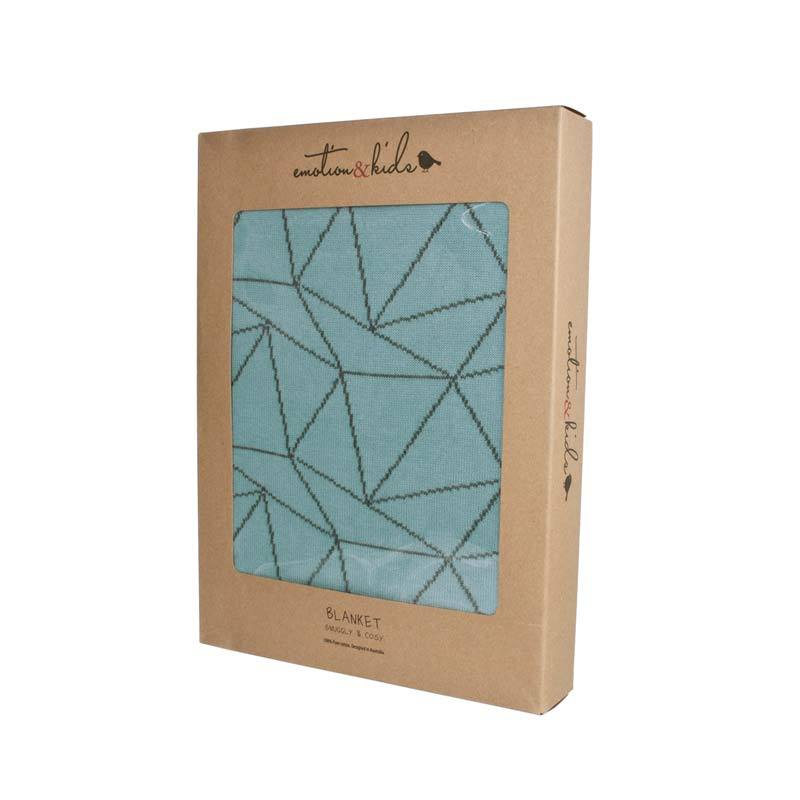 Designed in Australia and beautifully illustrated with a geometric blue and grey pattern, this blanket will be everyone's favourite.