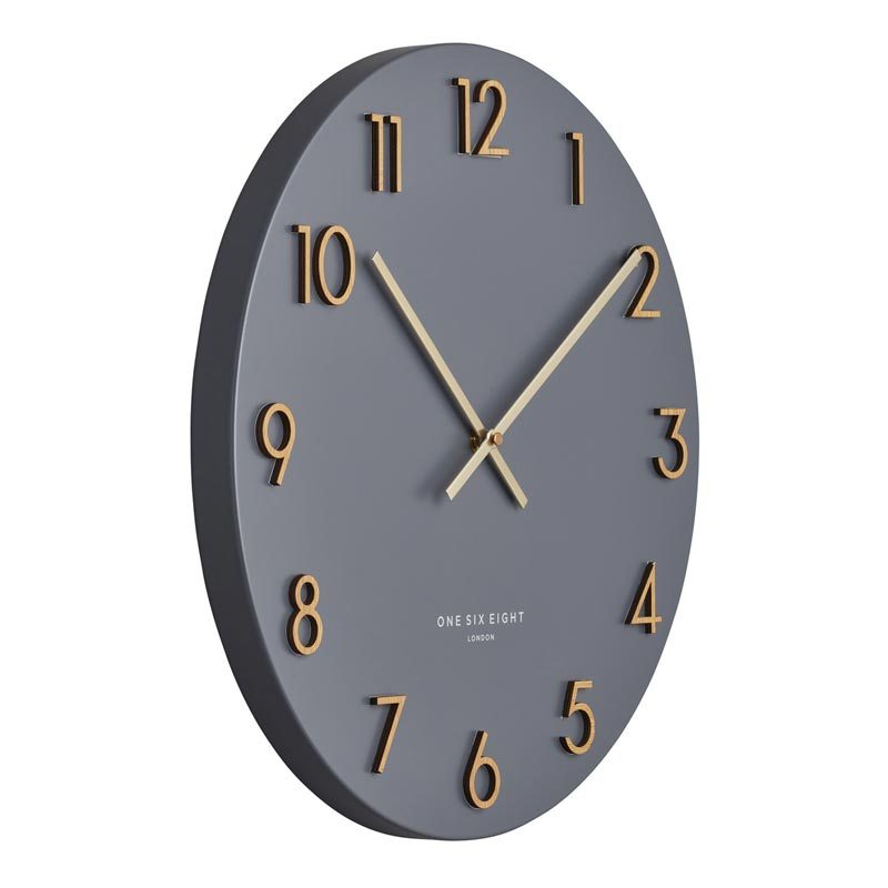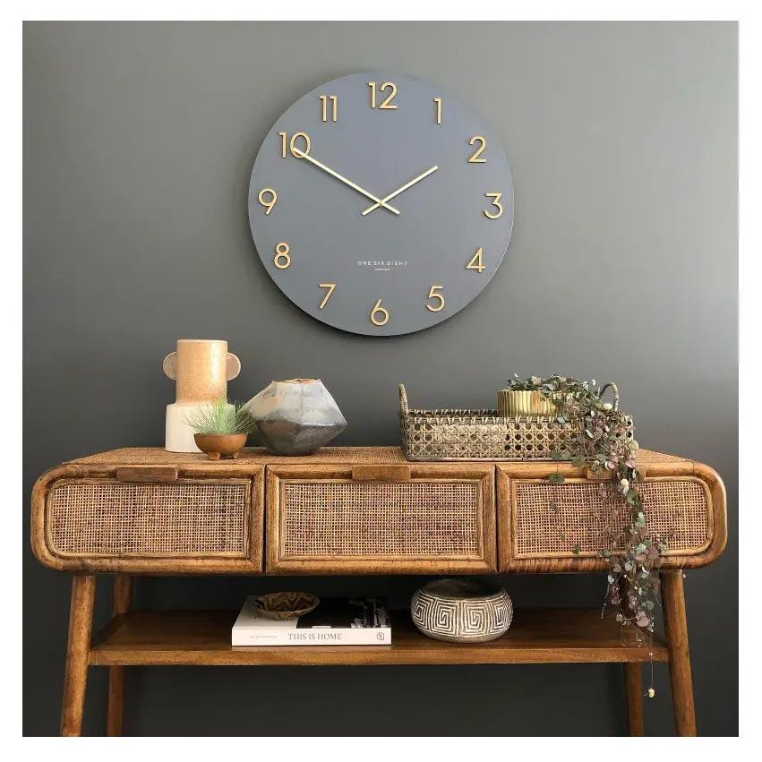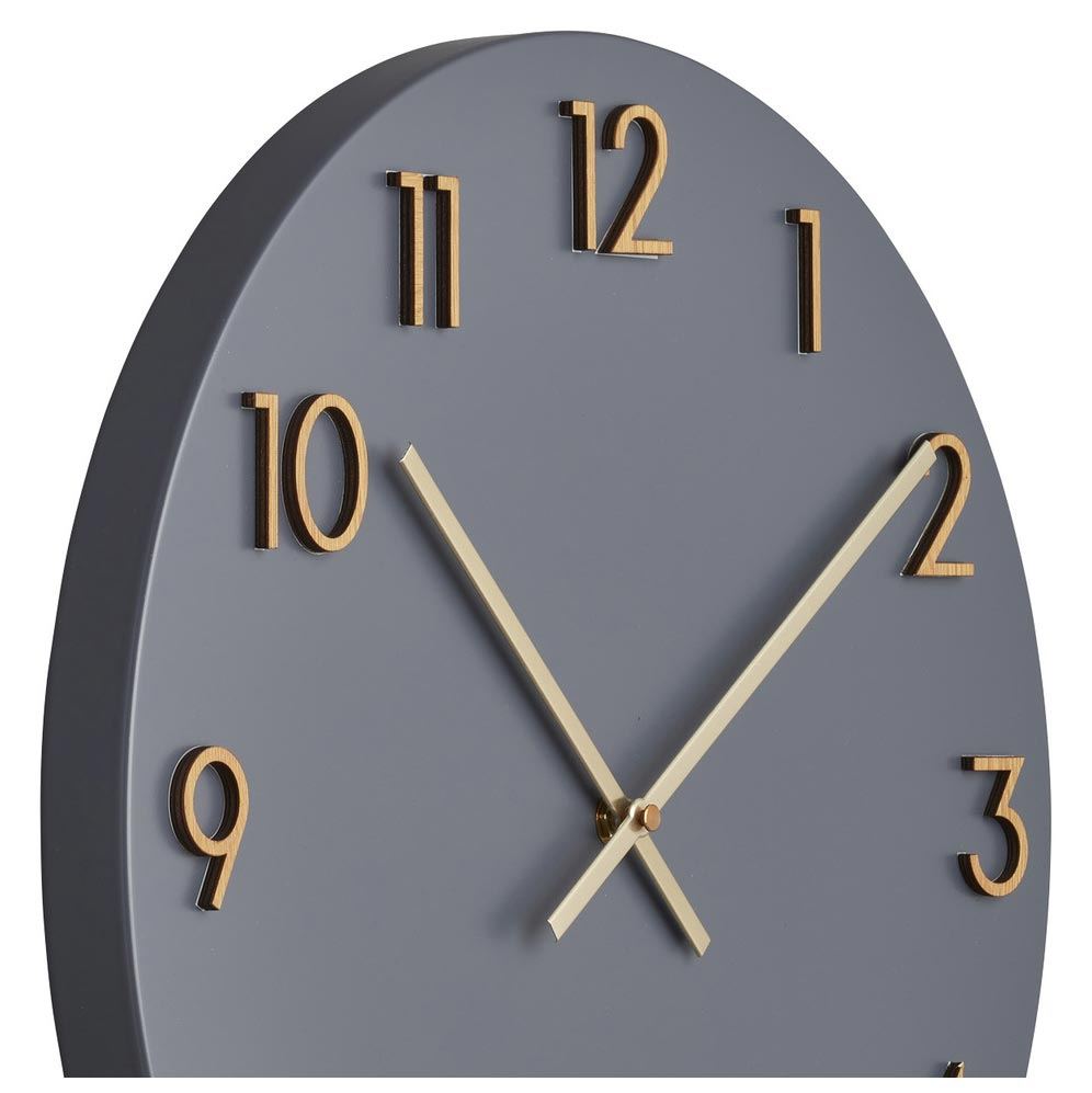 Fashioned from durable pressed metal with wooden number details and luxe soft gold hands for a fashionable addition.
