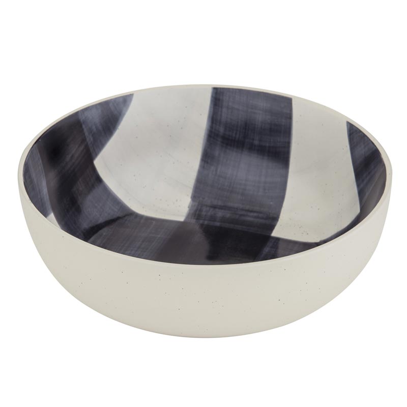 Made from hand painted stoneware, this large bowl is great for serving a variety of foods such as salads, pasta or use as a unique fruit bowl.