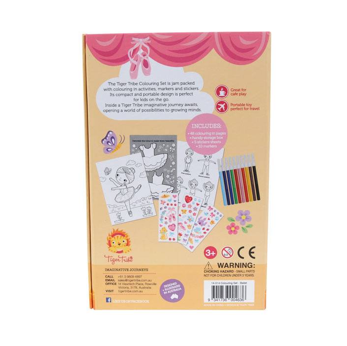 Each Colouring Set contains: 48 colouring-in pages, 2 storage compartments, 5 sheets of full colour stickers, 10 markers.