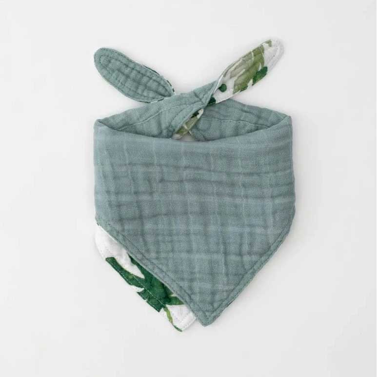 Cotton Muslin Reversible Bandana Bib - Tropical Leaf
