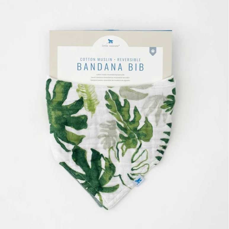 Little Unicorn Cotton Muslin Reversible Bandana Bib - Tropical Leaf