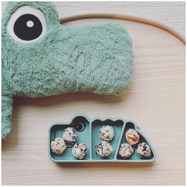 Croco is ready to make eating fun! The stick & stay snack plate will stay in place and help little eaters practice their eating skills.