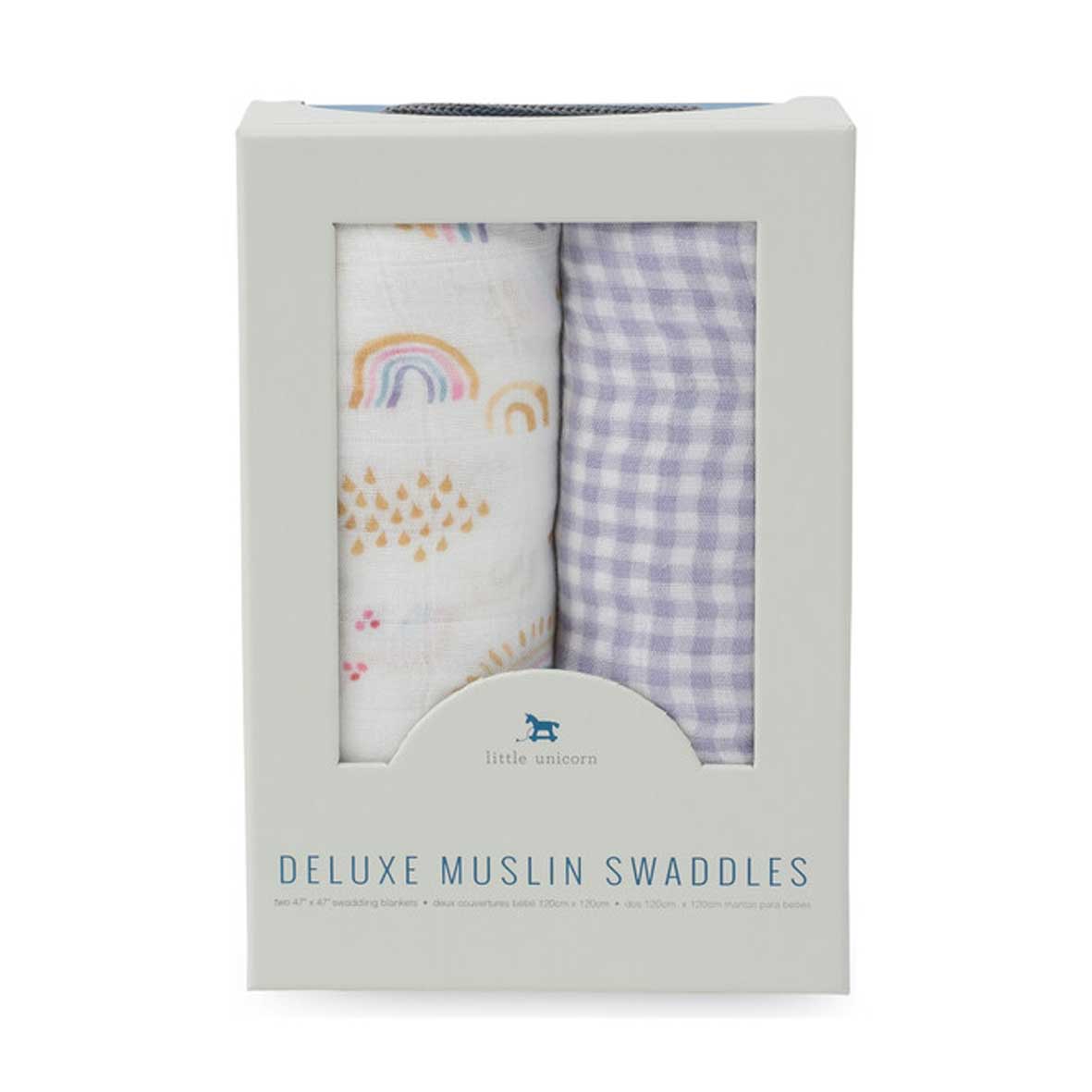 Little Unicorn Deluxe Muslin Swaddle 2pk – Rainbow Gingham