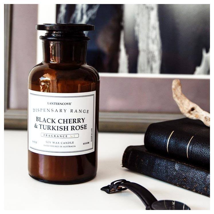 Hand-poured in Australia, these large vintage inspired glass apothecary jars have been filled with a rich, creamy soy wax and combined with the delightful fragrance notes of Cashmere, Sandalwood & Geranium.