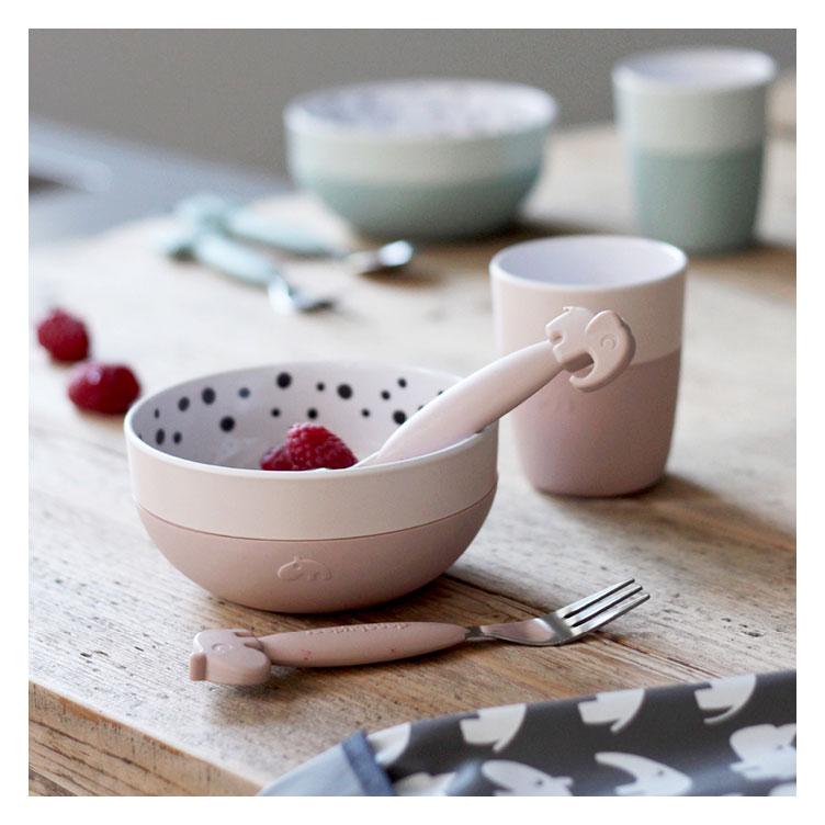 Cute and practical kids spoon and fork set with easy grip silicone for little hands with great ambitions.