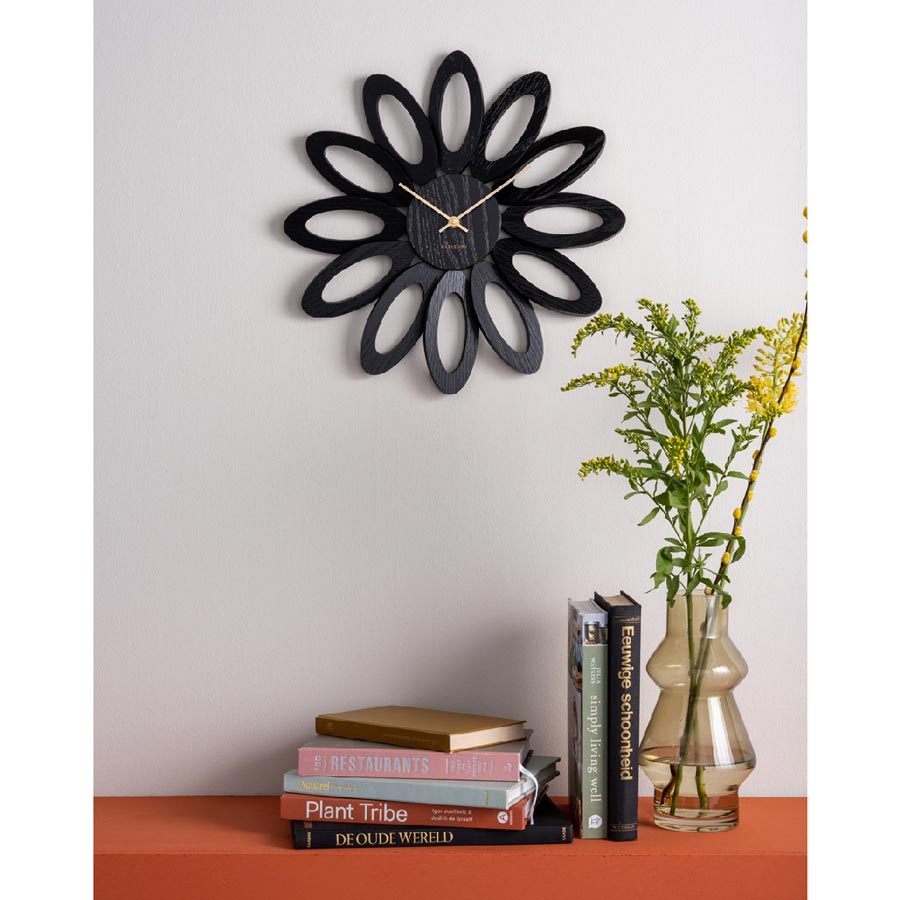 A great statement piece for your wall, the black Fiore wall clock from Karlsson features a beautiful 3D flower design with overlapping wood veneer petals serving as hour markers.