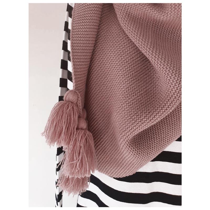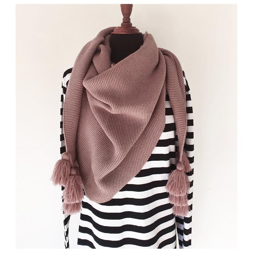 This thick triangle knit wrap with tassels is the perfect winter style statement piece. Cosy and soft, it will keep you warm and looking fashionable.