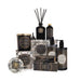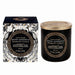 Lavish black soy candle wax is hand poured into an elegant glass vessel, complete with an adorned gold metal lid to exude a classic fragrance and mood of opulence.