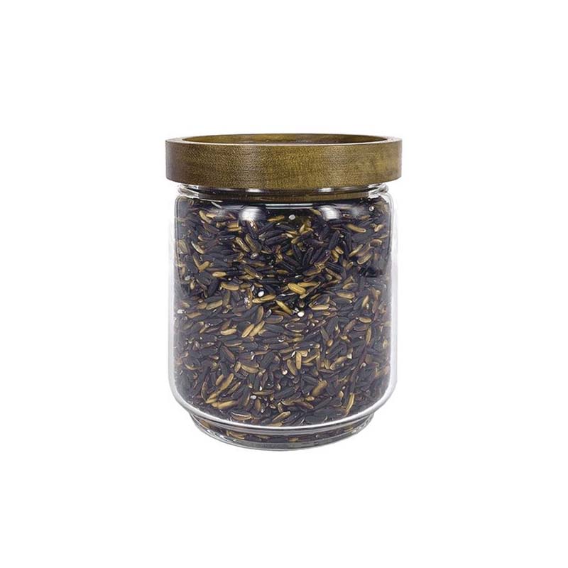 Each jar is hand made with mouth blown borosilicate glass & an acacia lid for decorative style.