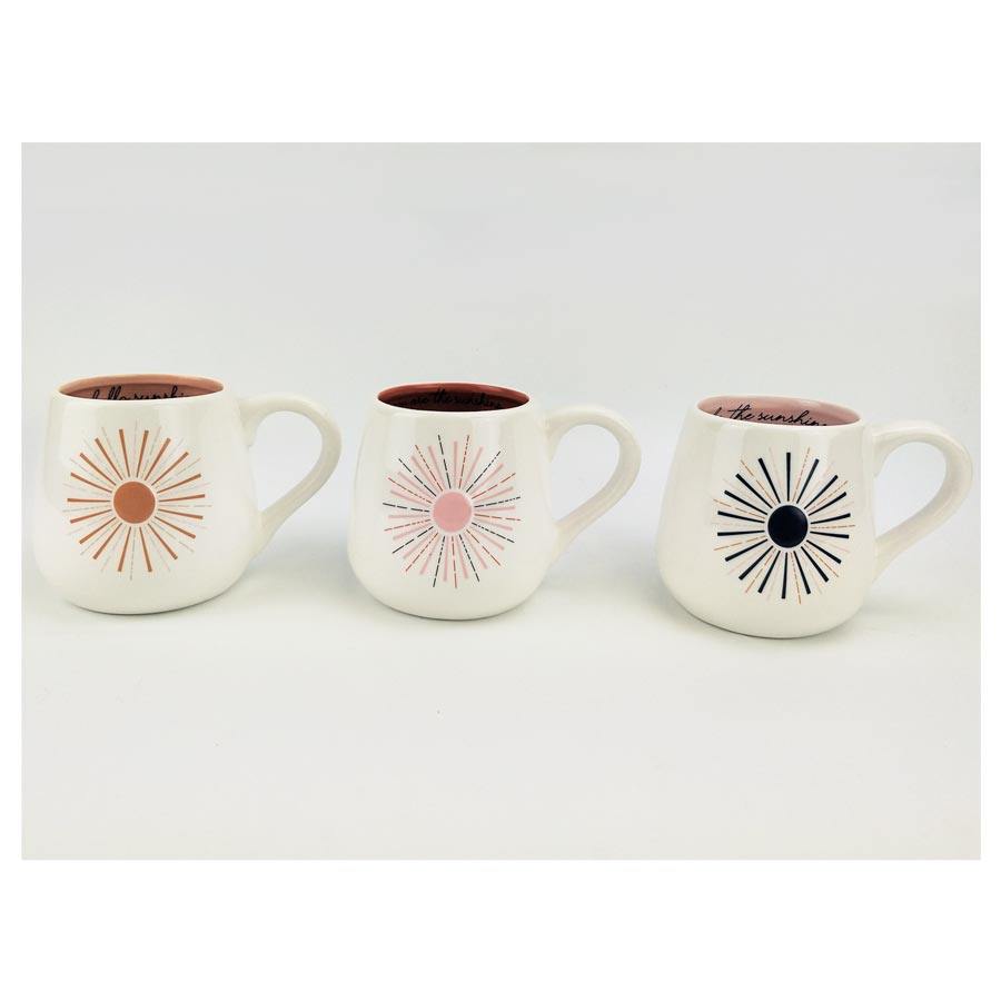 The wording 'Hello Sunshine' is written on the inside of the mug so that you can be reminded on every sip.