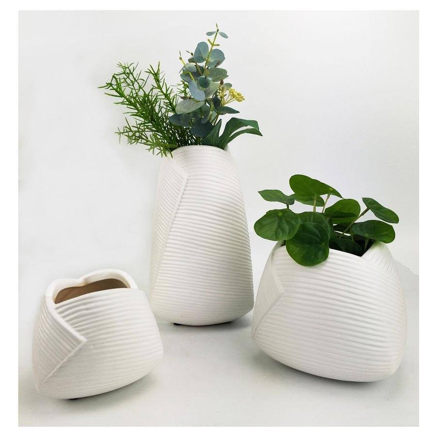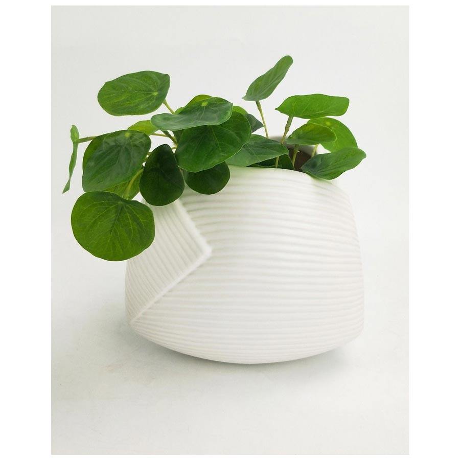 A fabulous planter featuring a fun ribbed wrap design & white glaze. Drainage hole & stopper.