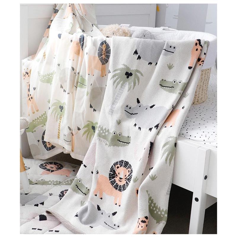 This luxurious soft blanket is made from 100% breathable cotton to keep baby comfortable and features a cute jungle animal design.
