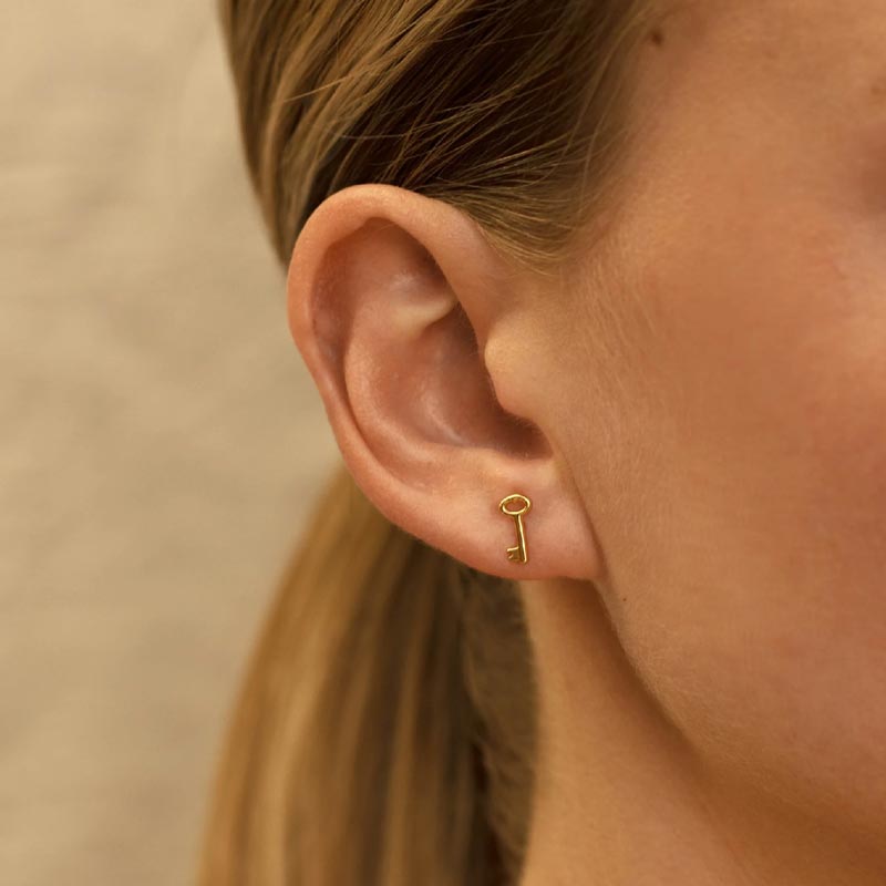 The Key Stud Earrings feature a delicate key shape. They look fantastic on their own, or mixed with other earrings and come beautifully presented in a gift box.