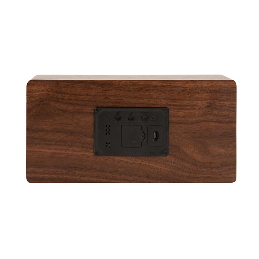 Powered by USB, the digital time (12 or 24 hour) is displayed by the built-in led-screen and the shell is made of robust MDF.
