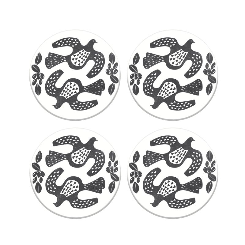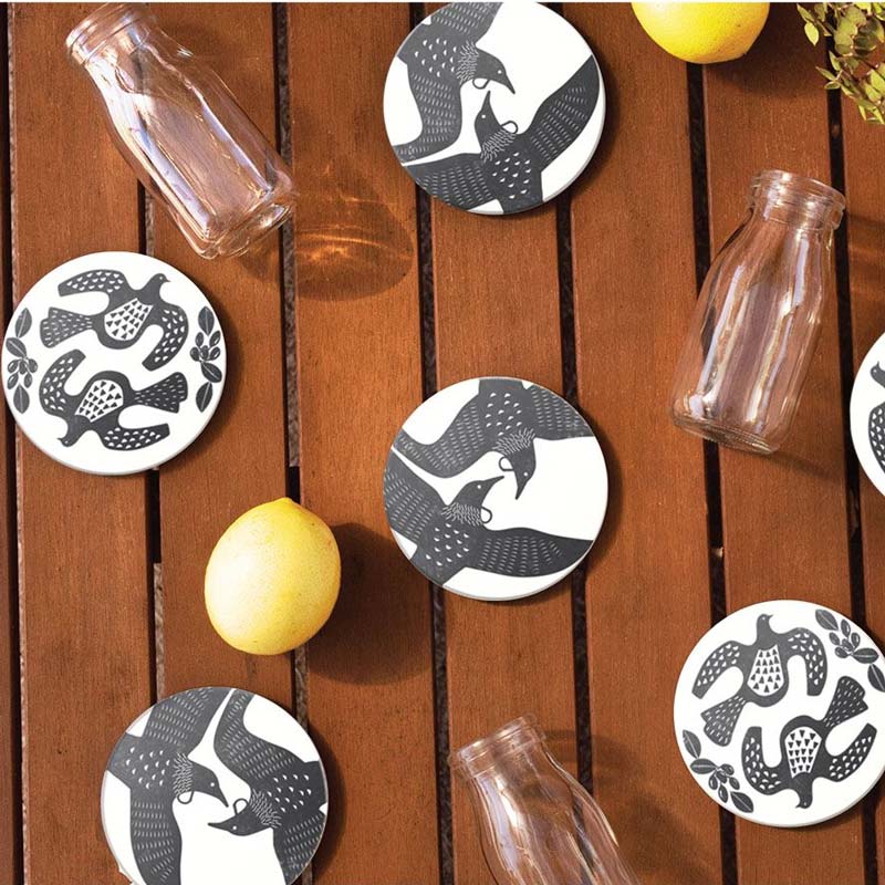 These eye-catching monochrome linocut style coasters are a striking addition to your coffee table or table setting.