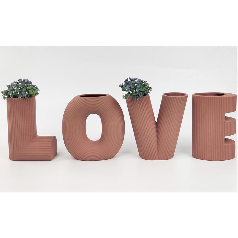 A fabulous ribbed vase set that spells out the word LOVE.