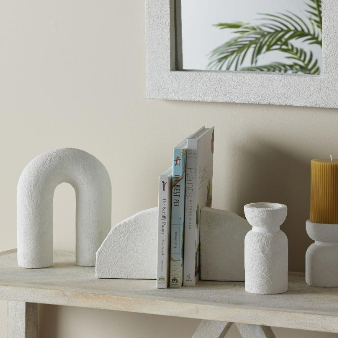 Made from cement with a sandy textured finish they look great on opposite ends of your book collection - alternatively, simply display as room decor.