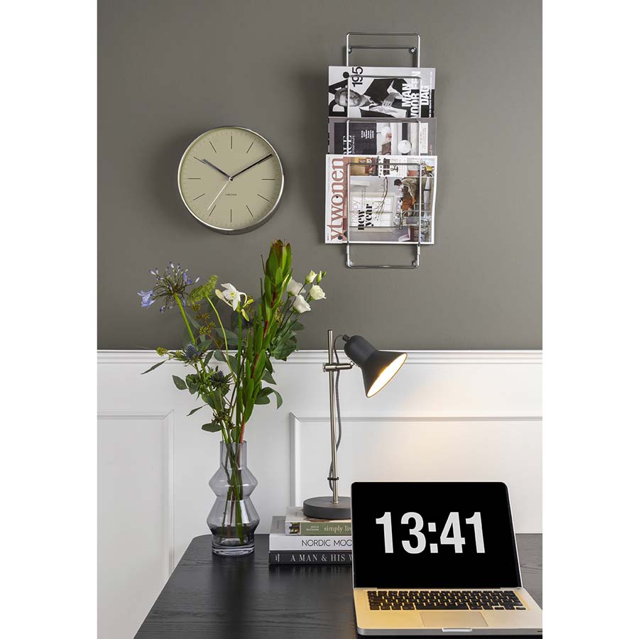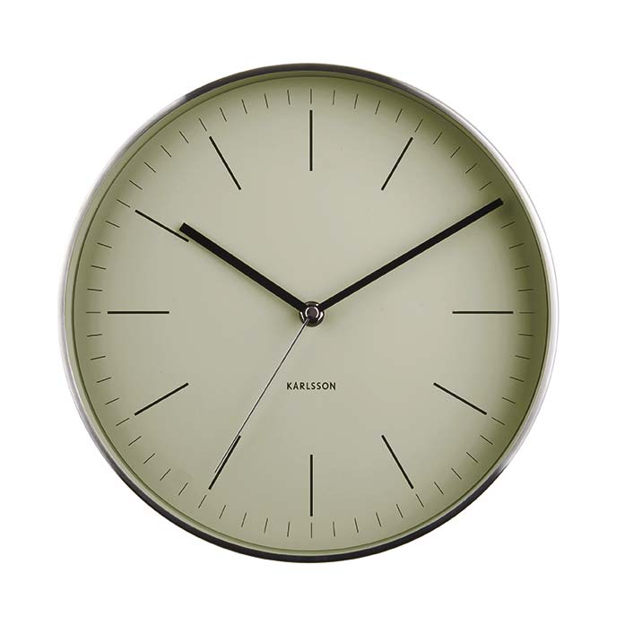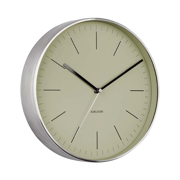 The Karlsson Minimal olive green wall clock emphasizes the style of every wall and interior with its minimalistic appearance.