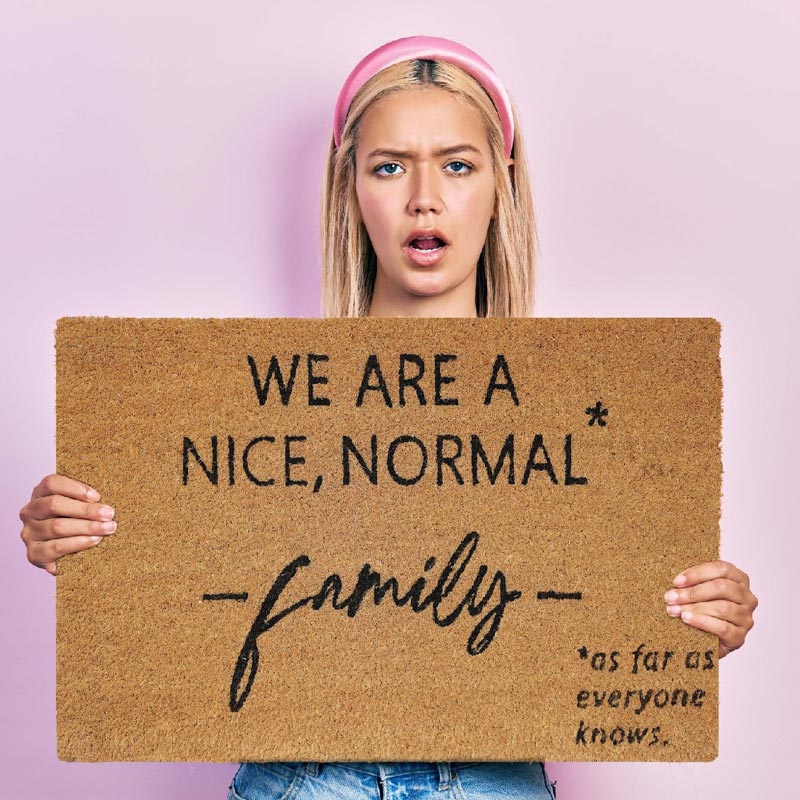 Personalise your doorstep with this humorous, family themed door mat.