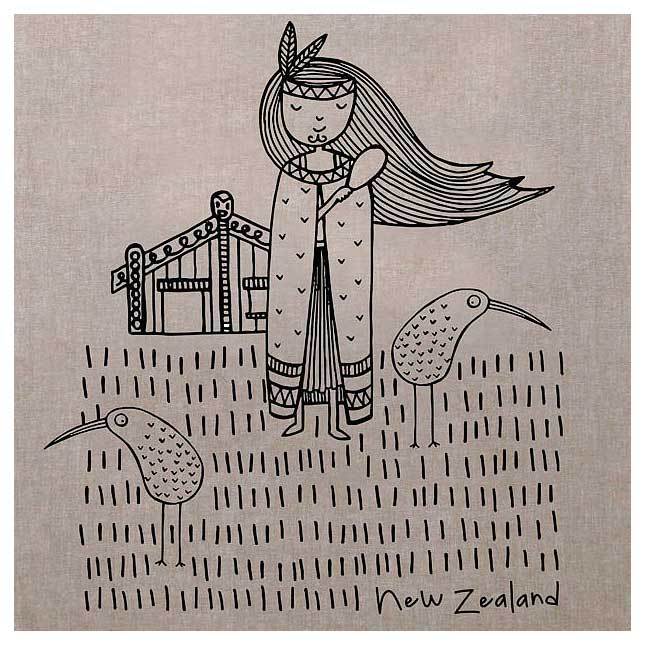 Proudly designed in New Zealand, this 100% cotton tea towel depicts a young Maori Girl in a cloak in front of her marae.
