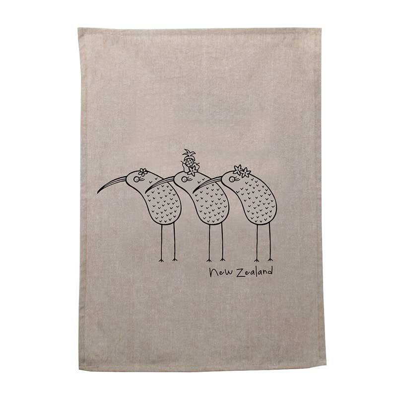 This natural coloured kiwiana tea towel featured a black design and makes the perfect gift.