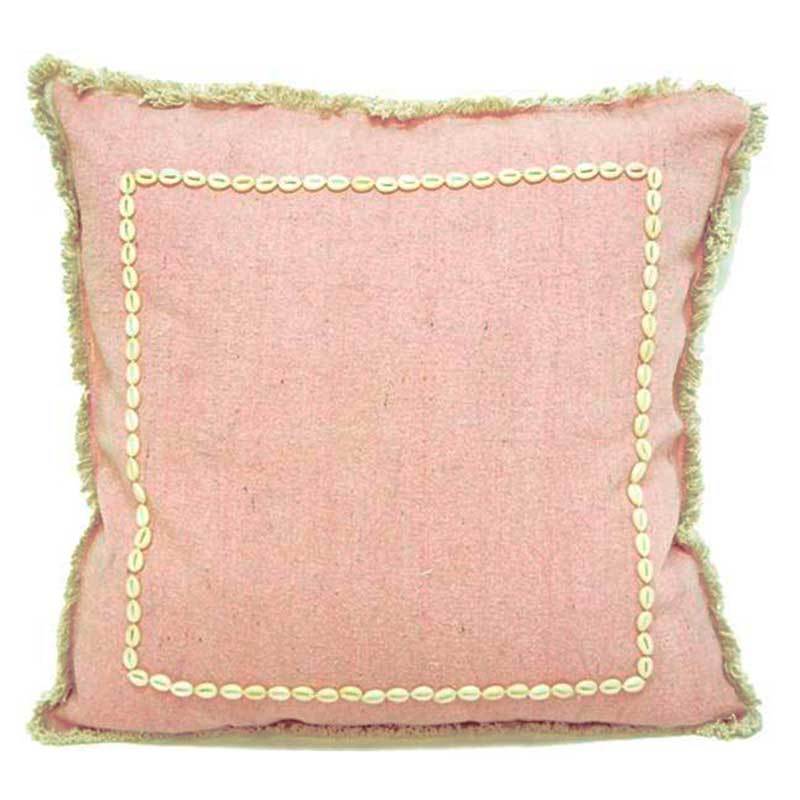 This large cushion features a hard wearing pink cotton fabric and adorned with a shell border to give it a relaxed beach vibe.