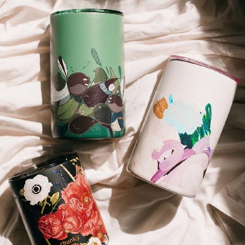 The Chunky Artist Series collaborates with artists from around the world to bring you a gorgeous collection of fun travel coffee cups and drink bottles.