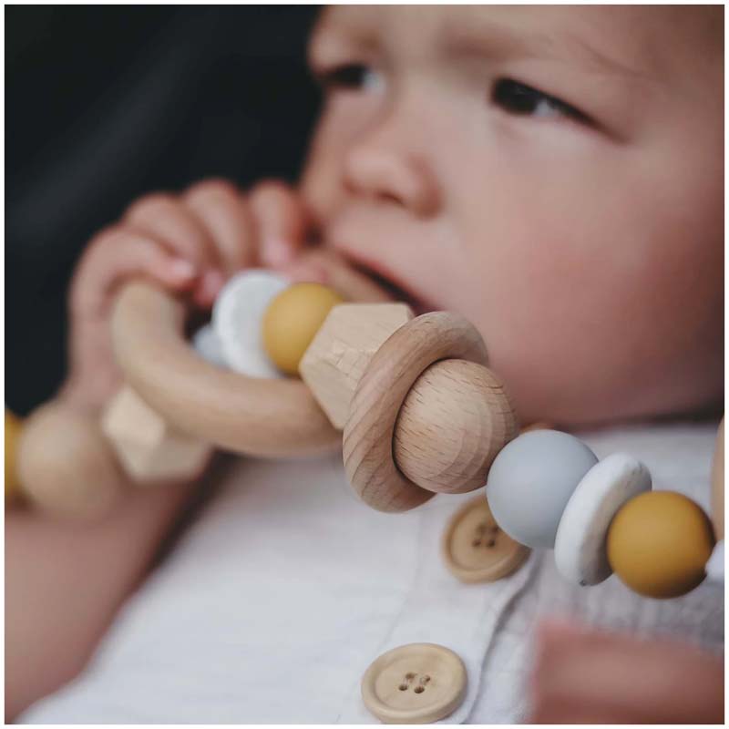 Silicone & Wood Pram Garland/Teether - Mustard Round