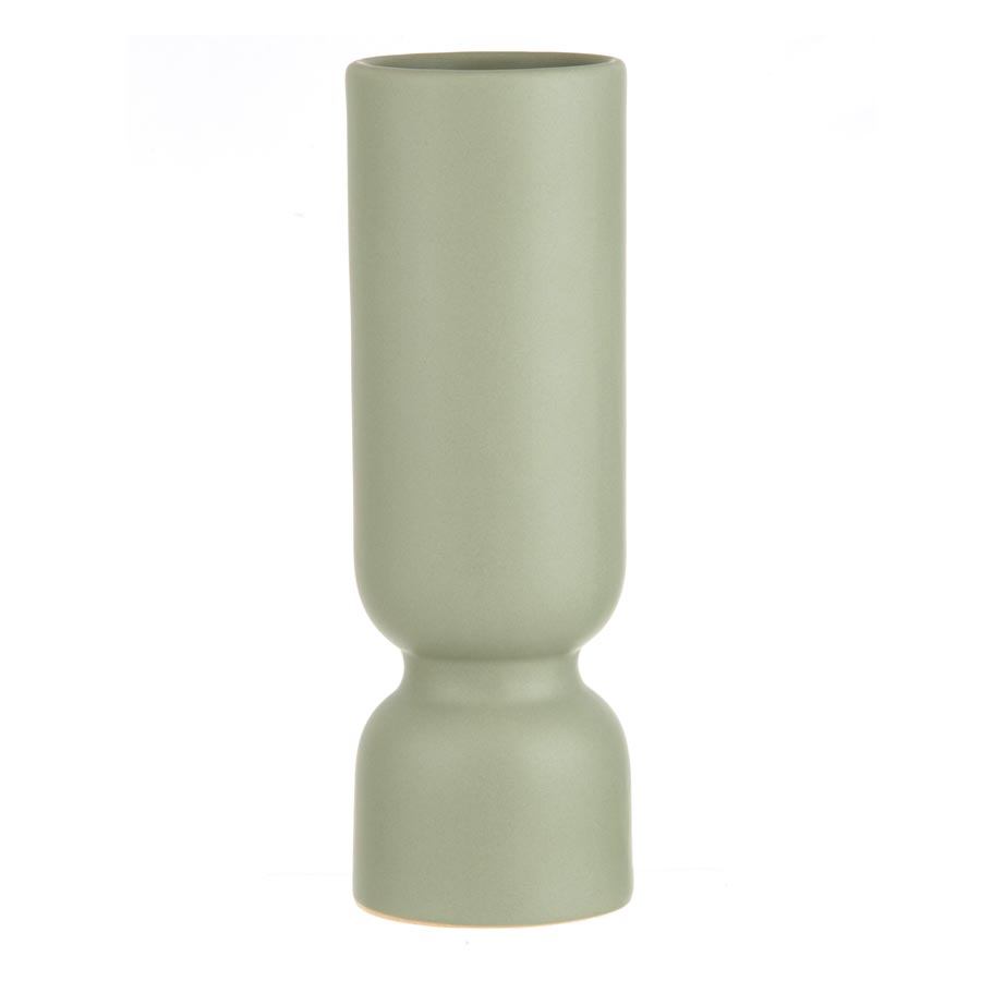 This tall green vase is made from stoneware with a eucalyptus-coloured appearance and matte finish.